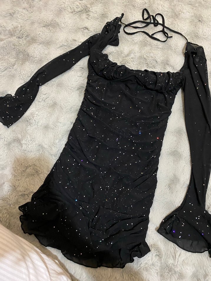 Siyah Mini Simli Elbise
