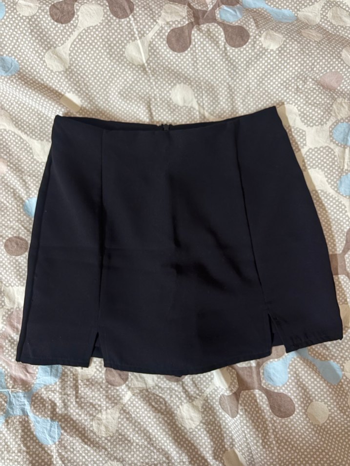 Siyah, düz, dar kesim mini etek. Herhangi bir defosu yoktur