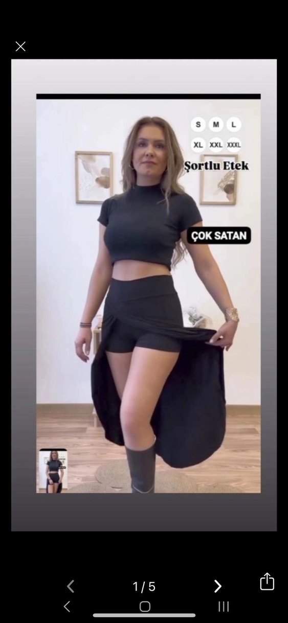 Siyah, düz, sentetik kumaştan üretilmiş, kısa iç şortlu ve dar kesim mini etek. Günlük kullanıma uygun, trend sokak stiline sahip. S-m beden aralığında.