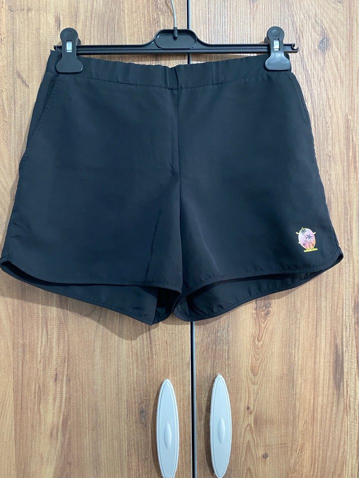 Siyah renkte, düğmeli ve bol kesim mini spor şort. Yumuşak ve sıcak kumaştan, rahat ve şık sokak stili için uygundur. ♀️M beden az kullanılmıştır hiçbir sorun yoktur.