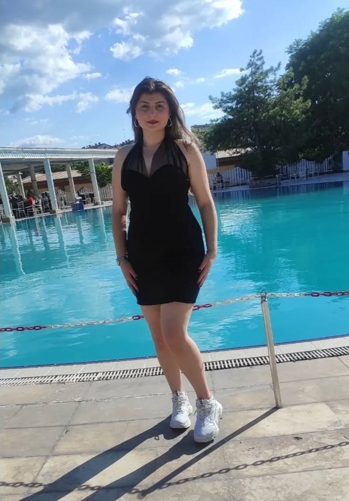 Siyah kumaştan, yüksek yakalı ve askılı kollu, atletik ve gotik tarzda kısa, vücuda oturan mini elbise. boyundan baglama detaylı.