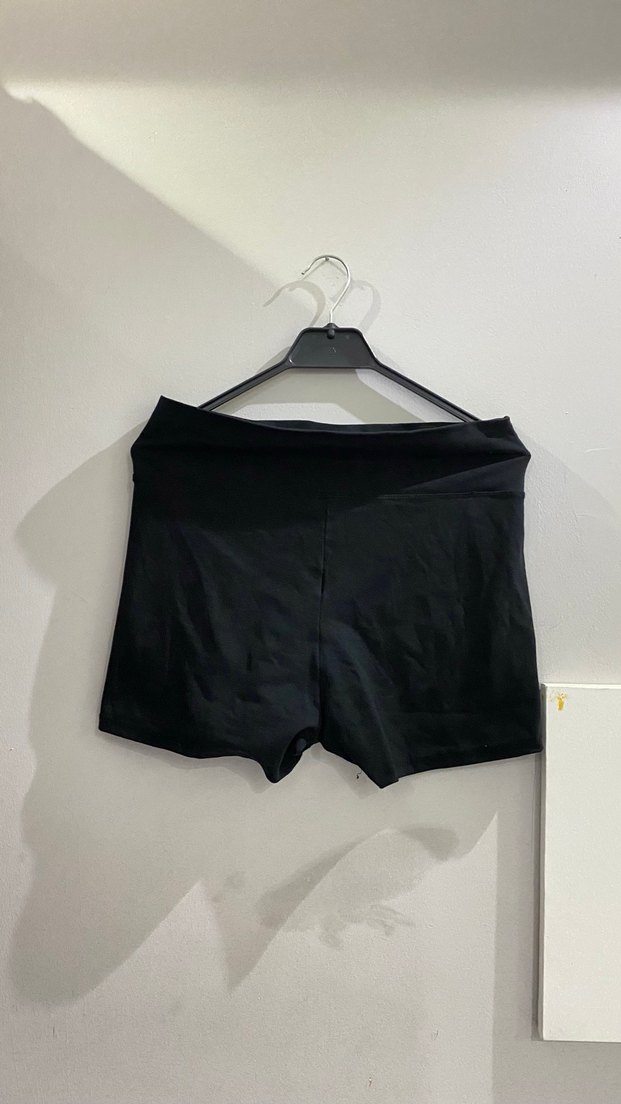 Düz siyah, kısa ve vücuda oturan bu mini şort, yumuşak sentetik kumaştan üretilmiştir. Spor ve günlük kombinlere uygun sade bir tarza sahiptir.