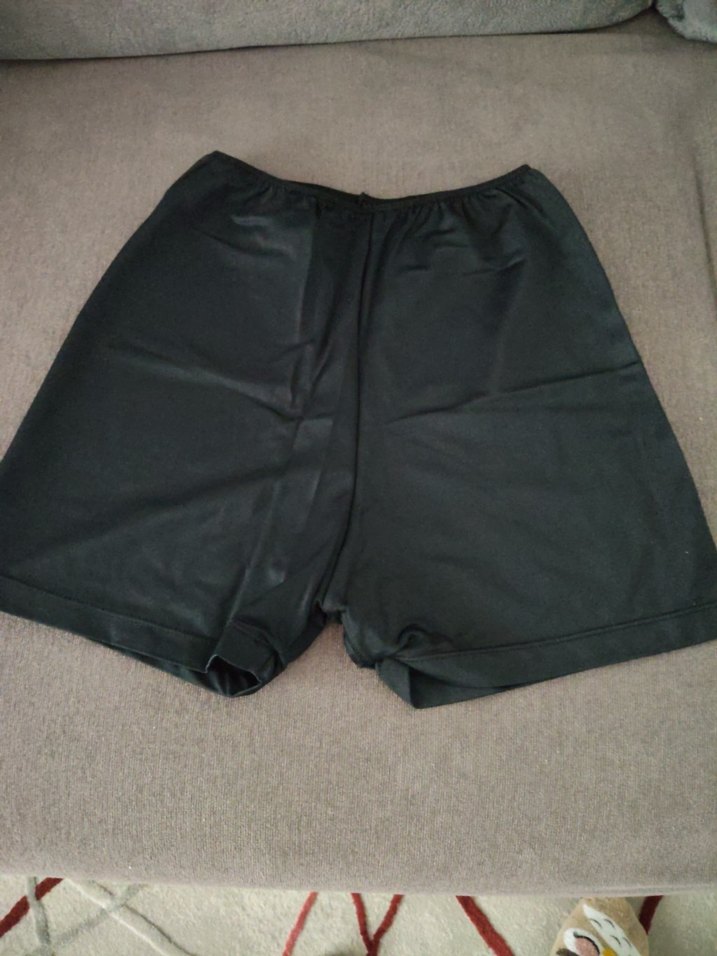 Siyah, sentetik kumaştan üretilmiş, vücuda oturan mini spor şort, rahat ve şık bir görünüm sağlar. Spor ve günlük kullanım için uygundur. ♀️