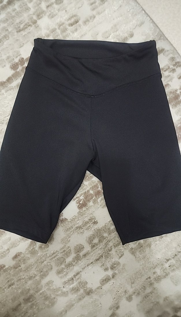 Siyah, mini uzunlukta, yüksek belli, sentetik kumaştan spor şortu. Rahat ve destekleyici, spor veya günlük kullanıma uygun.