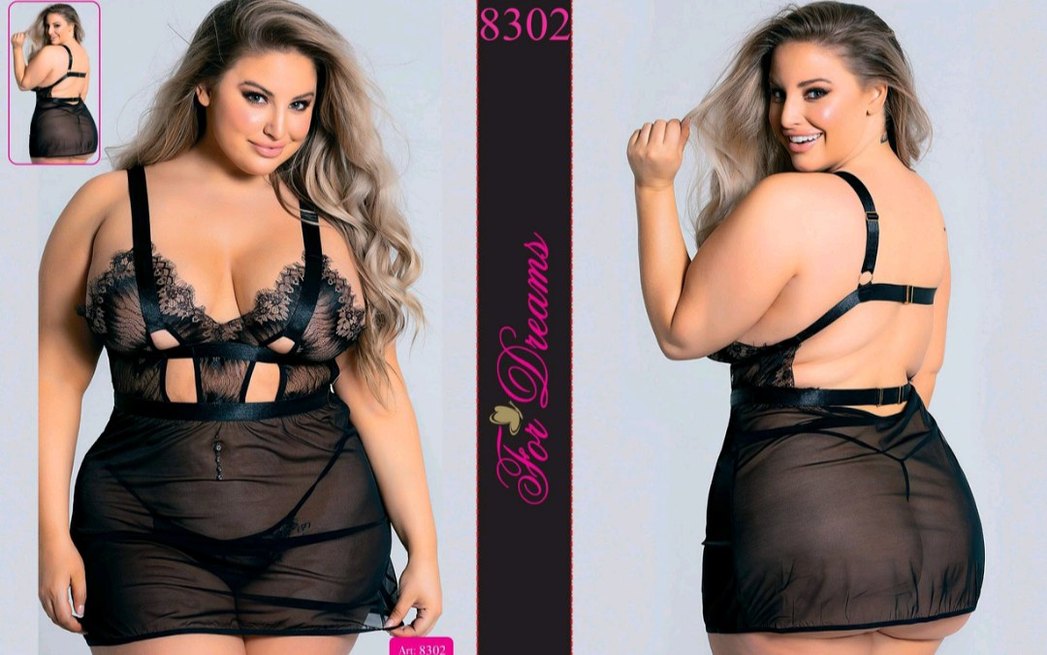 Siyah mini, strappy askılı, fitted kesim ve şeffaf kumaştan yapılmış gotik tarzda kadın gecelik. Model numarası 8302.