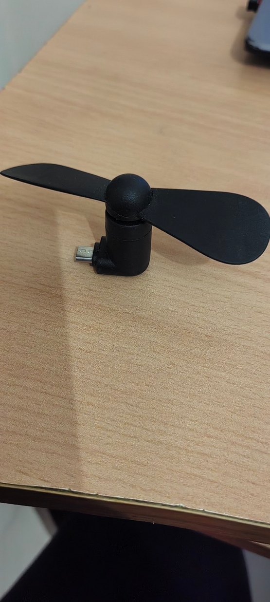 Micro USB girişli siyah mini telefon fanı, iki kanatlı ve taşınabilir yapıda, kolay kullanım sağlar. ️