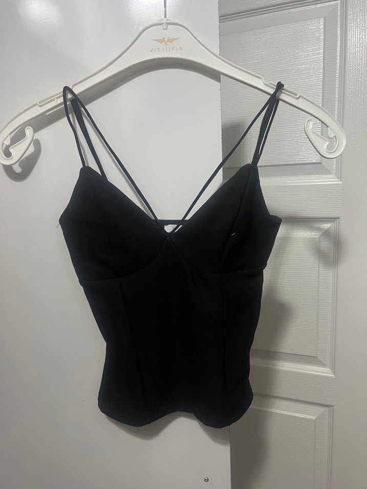 Siyah Mini V Yaka İnce Askılı Bustiyer