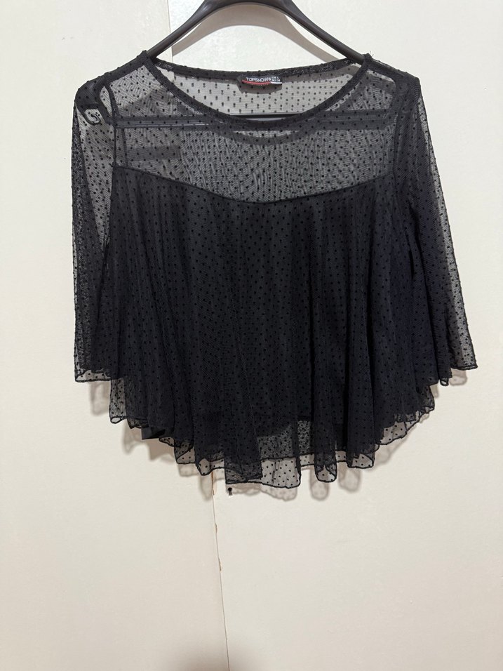 Siyah, kısa boylu, gevşek kesim ve volanlı detaylara sahip, şeffaf sentetik kumaştan yapılmış gotik tarzda bluz. Yuvarlak yaka ve askılı kolludur. Çok şık ister günlük ister gece giymelik uygundur. İç göstermez .iki katlı