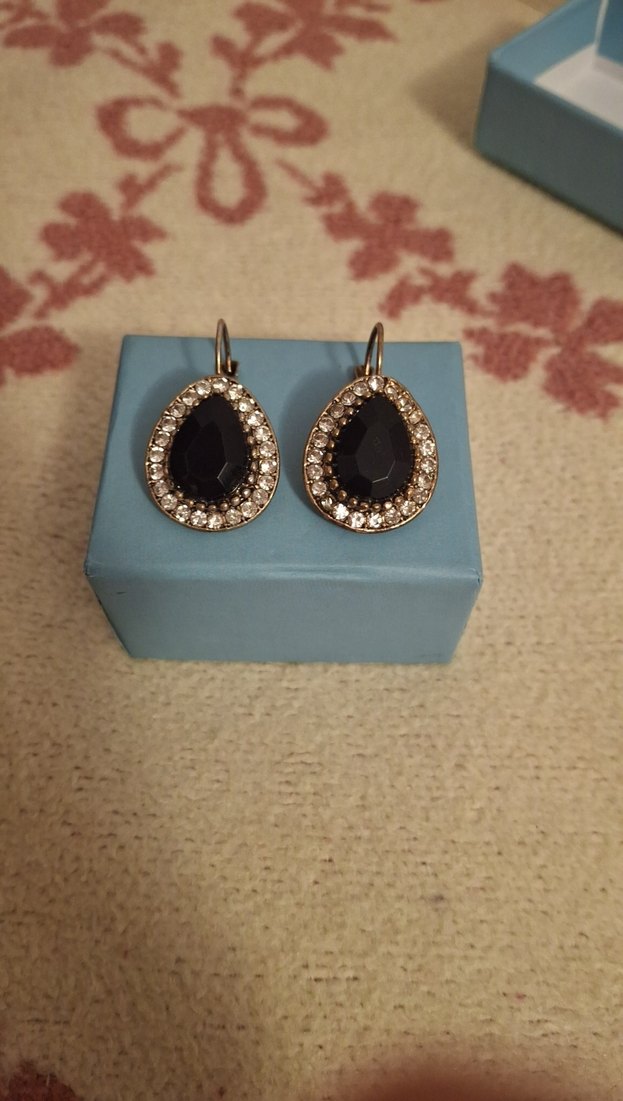 Siyah payetli taşlarla çevrili desenli vintage tarzda minik küpeler, romantik akşamlar için bohem şıklık sunar.✨