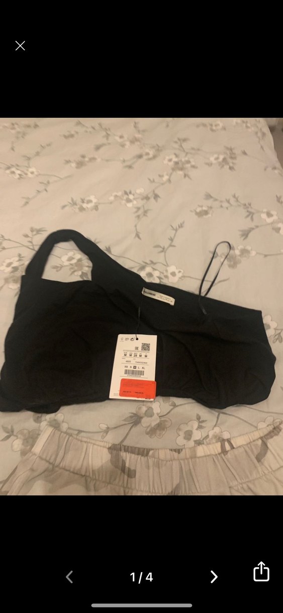 Siyah renkli, baskılı ve minimalist tarzda olan bu sütyen, midi uzunluğundadır. Sokak modası için uygundur. #Bershka#Stradivarus #Zara #Crop