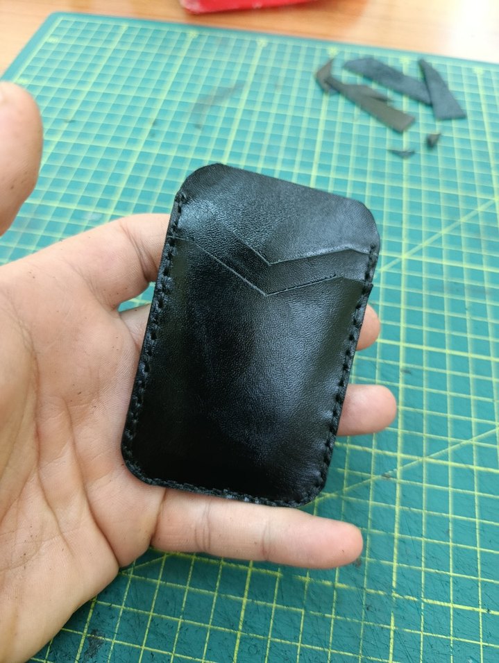 Minimalist biker tarzında, siyah deri ve desen içermeyen kompakt erkek cüzdanı. Elinizde rahat tutuş sağlar.