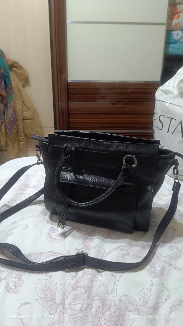 Siyah Minimalist Deri Kadın Çanta