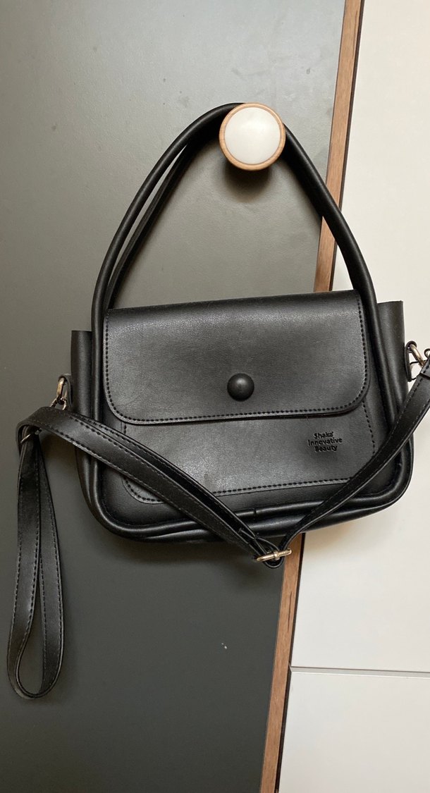 Siyah deri, tokalı kapaklı minimalist kadın çantasıdır. Düz, gotik tarzda olup günlük kullanıma uygundur. Ürün 2 kez kullanıldı sadece