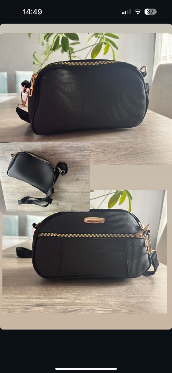 Siyah deri, minimalist ve çağdaş tasarımlı kadın çantası. Fermuarlı ve düz yüzeylidir, günlük kullanıma uygundur.