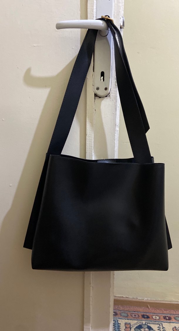 Siyah Minimalist Deri Kadın Omuz Çantası
