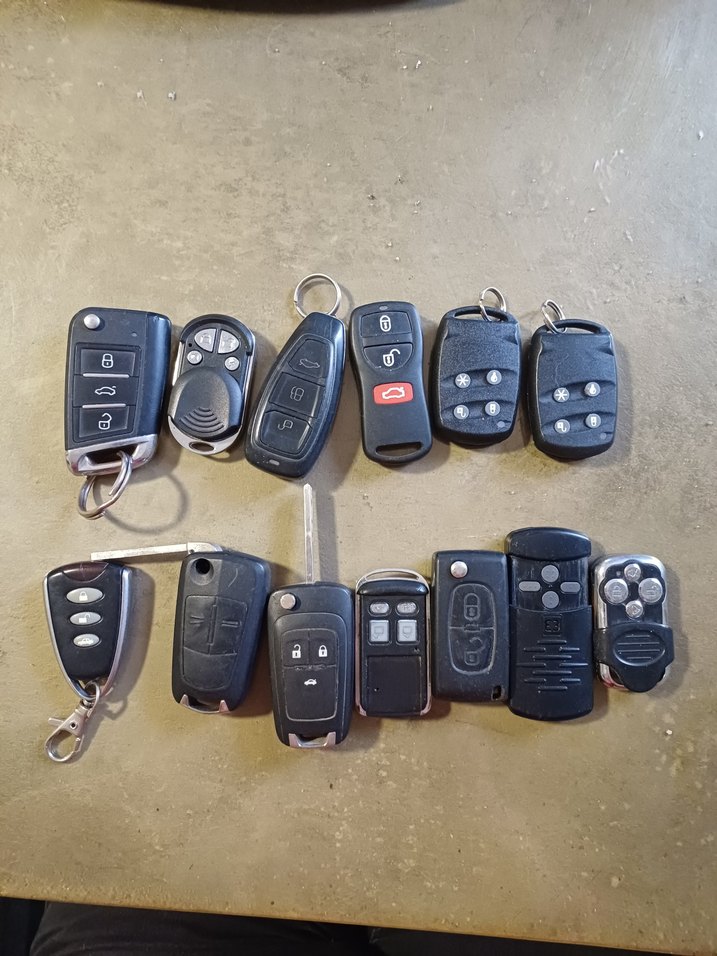 Farklı düğme düzenlerine sahip siyah minimalist erkek anahtarlık seti, sade ve koyu tasarımlar sunar. Counterculture stilini tercih edenler için ideal.