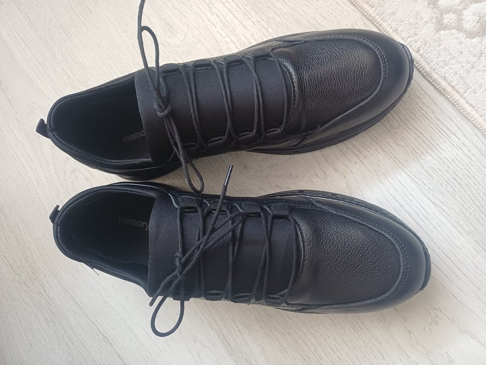 Erkek ayakkabıları için siyah, minimalist ve normcore tarzda bağcıklar. Hiç kullanılmadı Kutusu yok