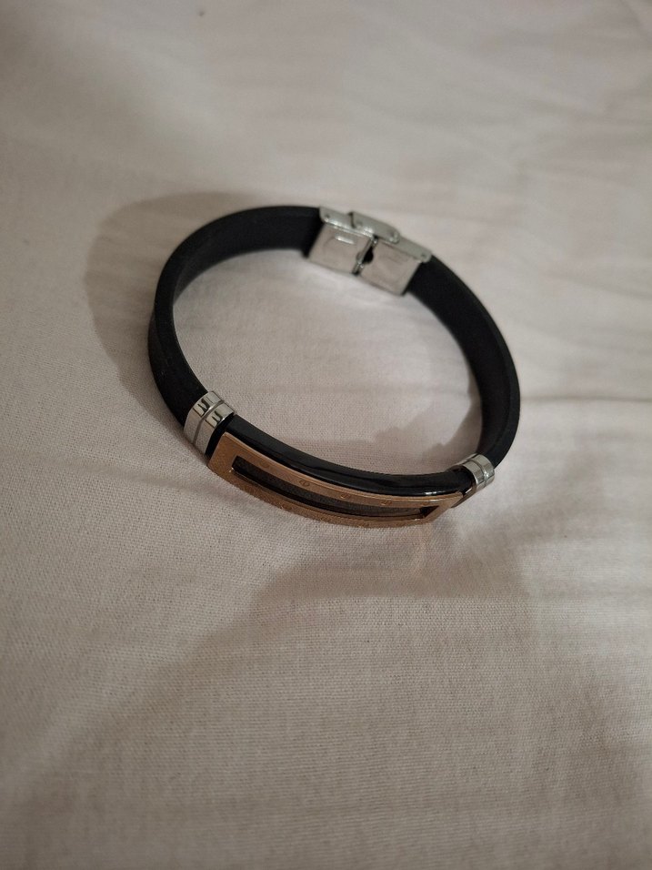 Bu siyah minimalist biker bileklik, metal tokalı ve sade tasarımlıdır. Koyu, sade tarzlar için uygundur. isim yazdırılabilir