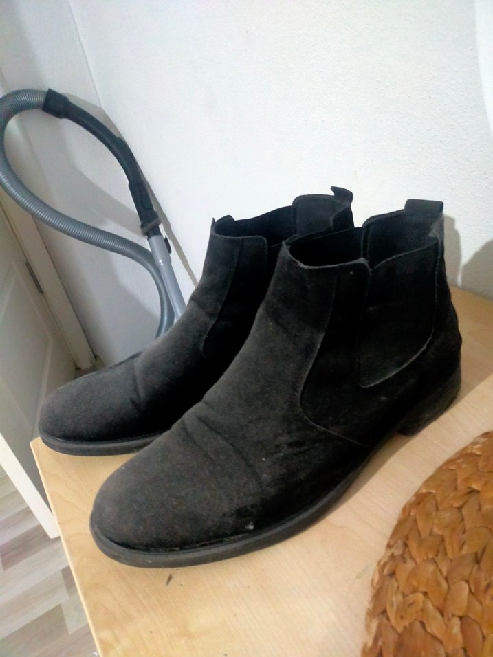Gri tonlarında, tokalı siyah minimalist erkek botları. Sokak stili için uygun, desensiz ve sade tasarım.