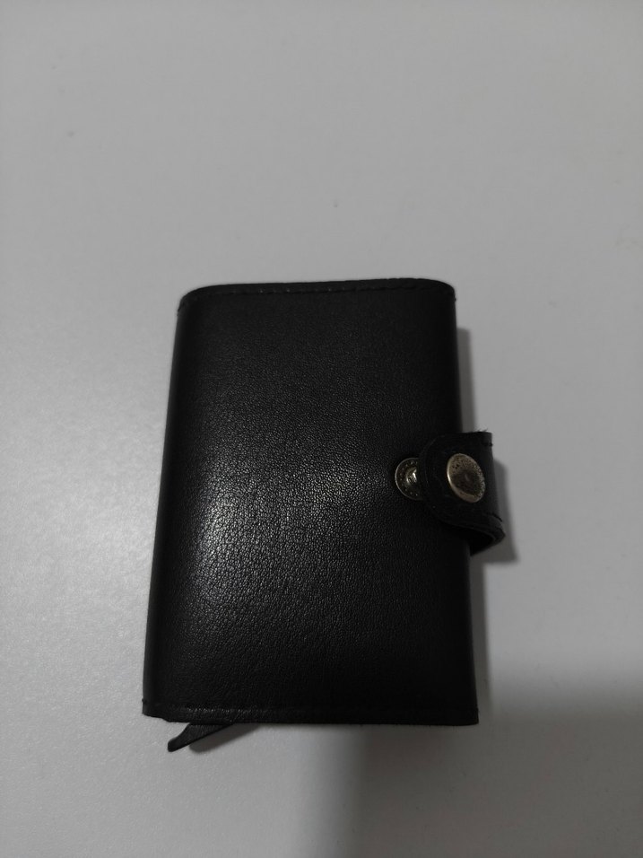 Siyah renkli, minimal tasarımlı erkek cüzdanı, çıtçıtlı kapak ile güvenli kullanım sunar. Düz yüzeyi ve kompakt boyutu klasik gotik tarzı yansıtır.