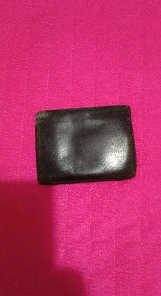 Düz siyah, minimalist tasarımlı erkek cüzdanı. Pürüzsüz malzemeden yapılmış, sade ve işlevsel stil. gerçek deri kullanıldı yüzü yipranildi illaki ama içi saglam