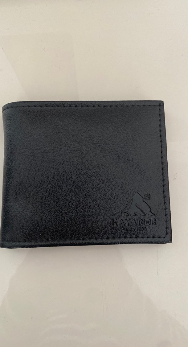 Siyah renkte, desen içermeyen minimalist tasarımlı erkek cüzdanı. Dayanıklı malzemeden yapılmış, biker tarzına uygun.