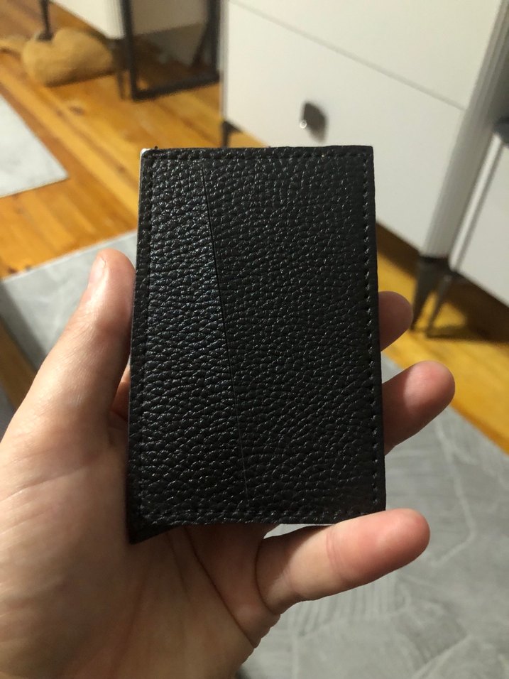 Siyah, dokulu yüzeye sahip minimalist erkek cüzdan, moda öncülerine uygun şık ve avangart tarz sunar.