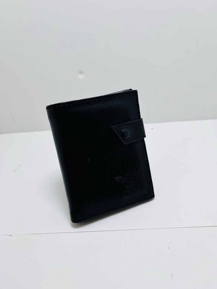 Siyah renkli, çıtçıtlı kapamalı minimalist erkek cüzdanı. Düz, desensiz ve koyu renkte, sade bir sokak stili için uygun.