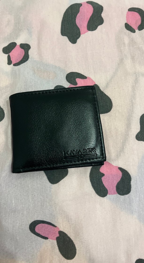 Siyah renkli, minimal desenli erkek cüzdanı. Önünde KYADER logosu kabartmalı olarak bulunur.