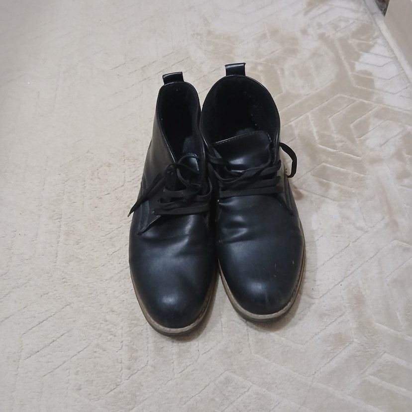 Siyah deri erkek botlar, minimalist ve normcore tarzıyla günlük kullanıma uygundur. Trendy casual şıklık sunar. sol ayak arka kısmında hafif derı kalkmıştır baska hıcbır sorunu yoktur yenı gıbıdır