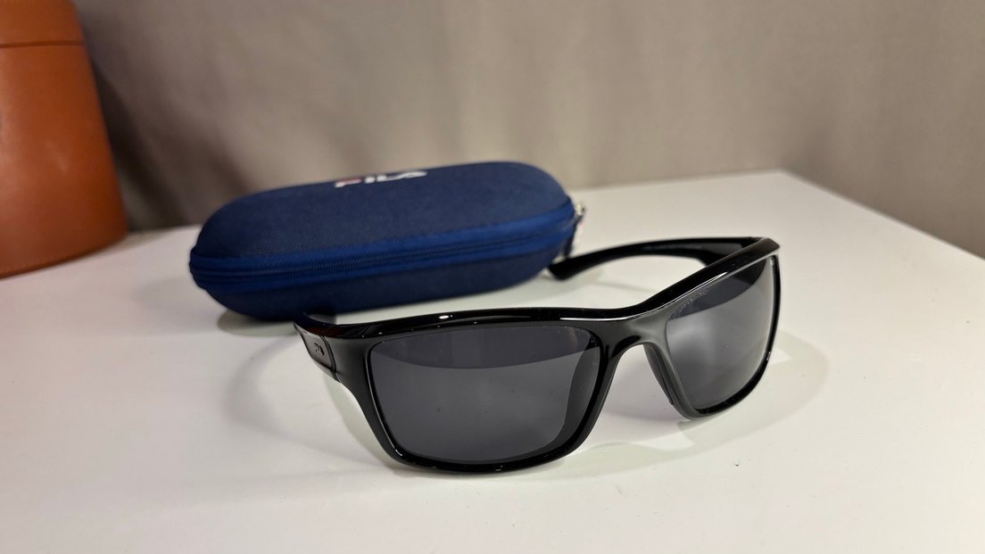 Koyu renk camlı, siyah minimalist erkek güneş gözlüğü. Mavi koruyucu kılıf ile birlikte. ️