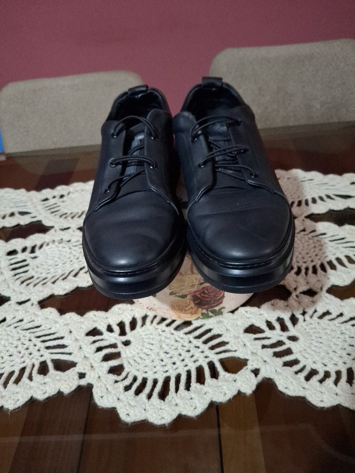 Siyah renkli, tokalı detaylı, kauçuk malzemeden üretilmiş minimalist erkek klasik ayakkabı. Günlük kullanıma uygun, normcore tarzda. Deri az kullanılmış