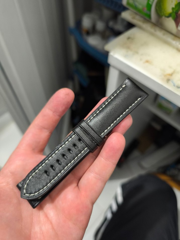 Beyaz dikiş detaylı siyah minimalist erkek saat kayışı, biker tarzına uygun sade ve sağlam yapıda. ⌚el yapımı hakiki deri panerai kordon