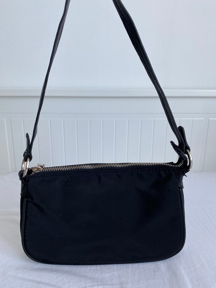 Siyah renkte, fermuarlı kapanışı bulunan, sentetik kumaştan yapılmış minimalist tasarımlı kadın çantasıdır. Günlük kullanıma uygundur.