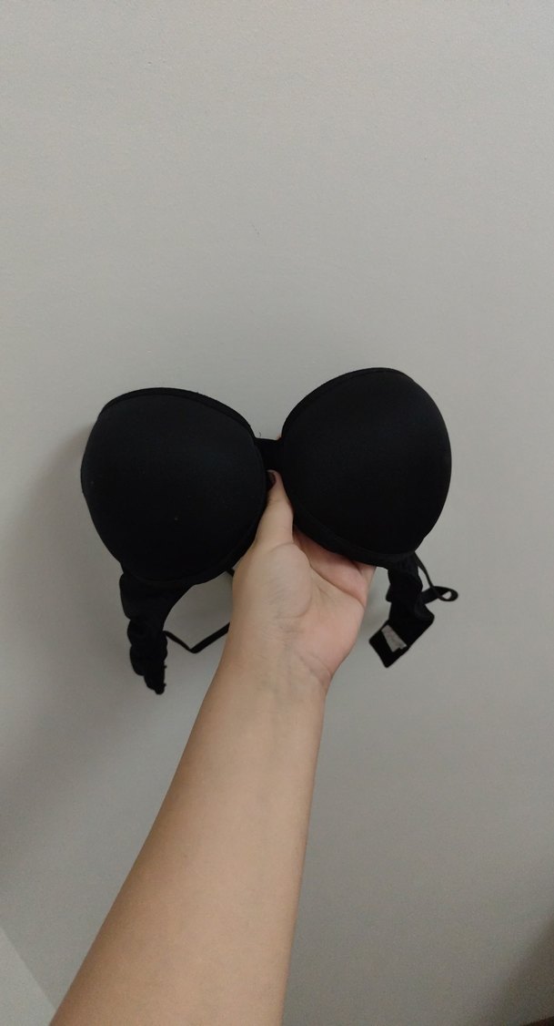 Siyah, desen içermeyen minimalist goth sütyen, normal midi uzunlukta ve sade bir tasarıma sahiptir. Dolguludur 85b