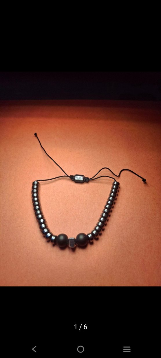 Siyah renkte, minimalist gotik tarzda, koyu boncuklar ve ayarlanabilir ipten oluşan erkek bileklik.