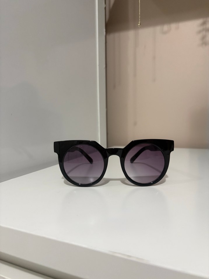 Siyah minimalist gotik kadın güneş gözlüğü, sade ve zahmetsiz şıklık sunan koyu renkli camlarla.
