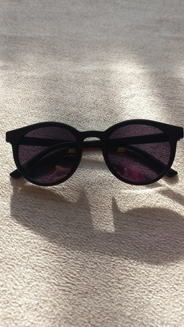 Siyah minimalist yuvarlak çerçeveli, gotik tarzda kadın güneş gözlüğü. Bohem ve retro stiller için zahmetsiz şıklık sunar. ️