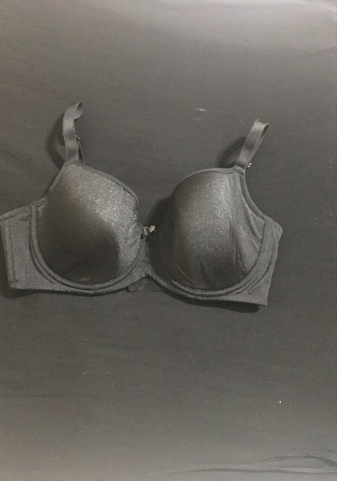 Siyah, desen içermeyen minimalist sütyen, ayarlanabilir askılarla rahat kullanım sağlar. Normal uzunlukta ve gotik tarzda bir üründür.