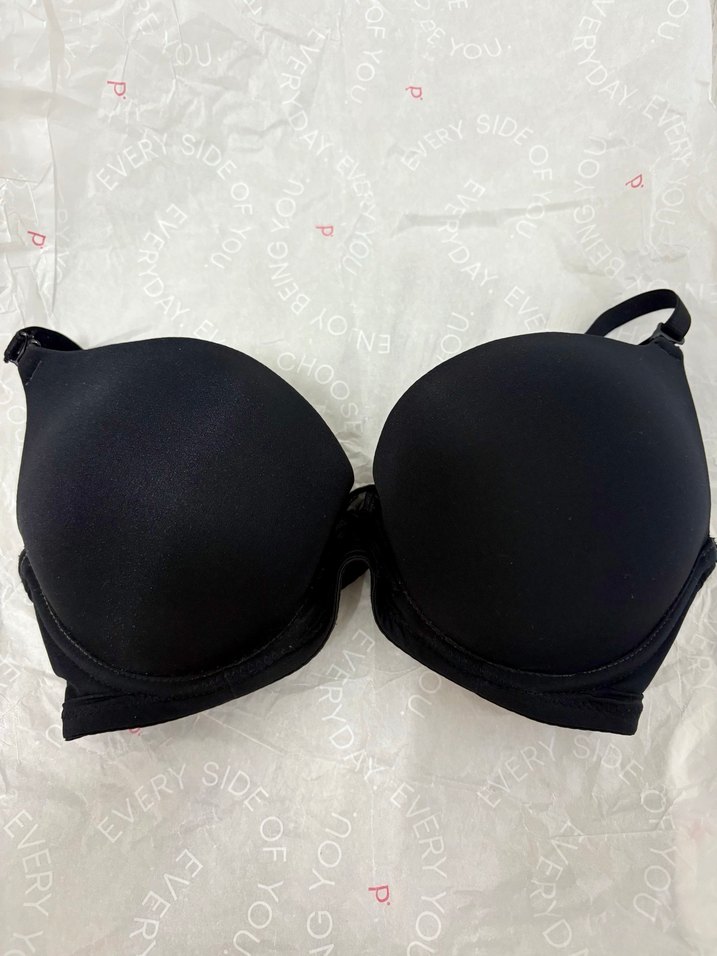 Siyah renkte, minimal ve gotik tarzda, desensiz ve normal uzunlukta sütyen. Şık ve koyu görünüme sahiptir.