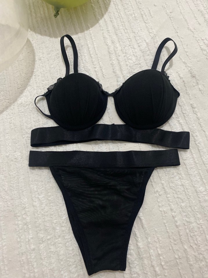 Siyah Minimalist Gotik Sütyen ve Külot Takımı