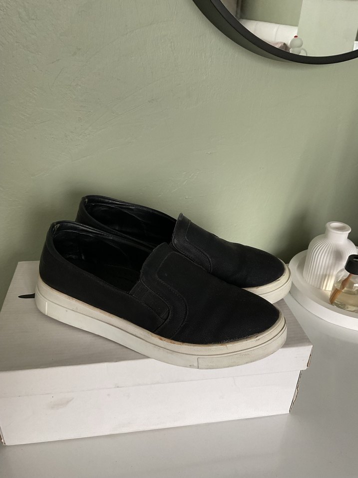 Siyah, desen içermeyen minimalist spor ayakkabısı, kauçuk tabanlı, günlük ve rahat sokak stili için şık ve sade tasarıma sahip.