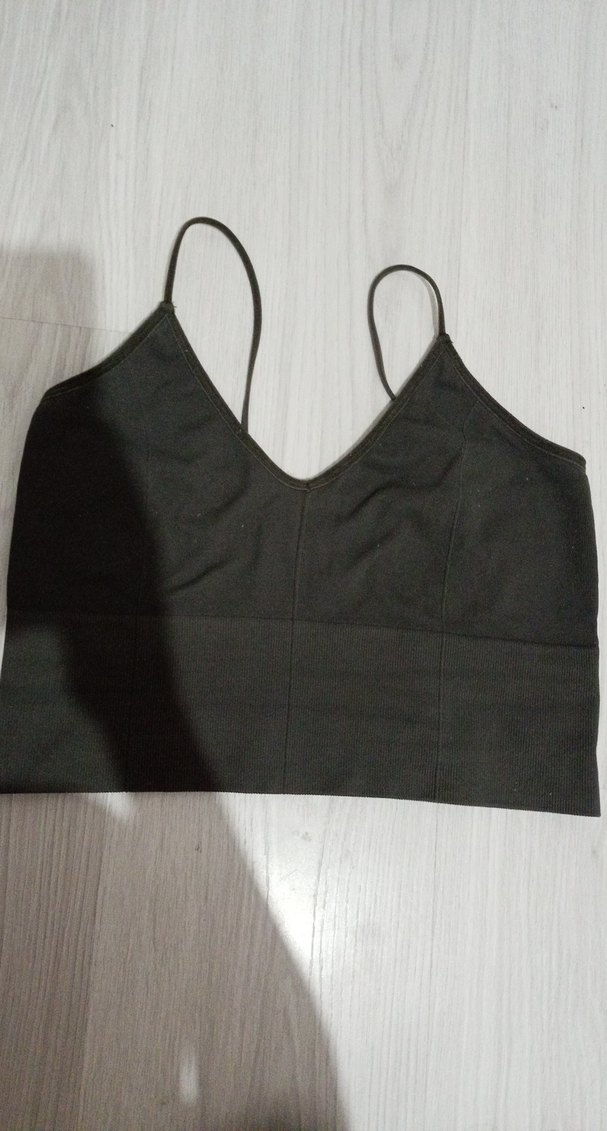İnce askılı, siyah minimalist kadın bralet, desen içermeyen sade tasarımı ve normal midi boyuyla rahat kullanım sağlar.