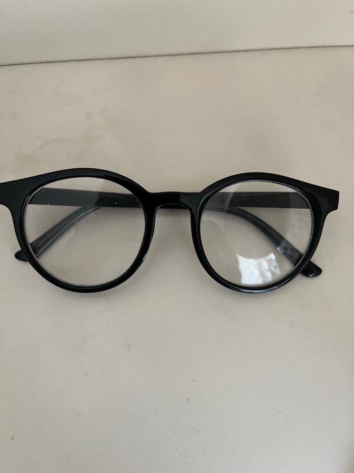 Siyah çerçeveli, şeffaf camlı kadın gözlüğü, minimalist ve goth tarzını yansıtan sade bir tasarıma sahiptir.