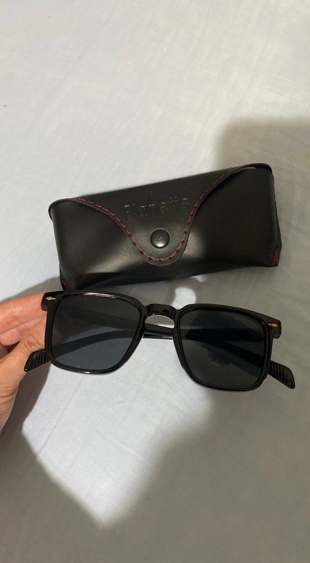 Siyah minimalist tarzda, sokak modasına uygun kadın güneş gözlüğü. Rahat ve şık, koruyucu siyah kılıf ile birlikte. Sayılı kez kullanıldı fotoğraftaki gibi tertemiz durumda. Kutulu gönderilecektir.