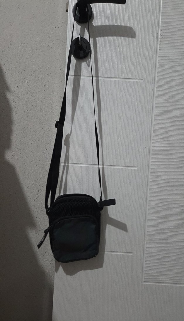 Siyah, minimalist omuz çantası, kemerli tasarıma sahip, desen içermeyen sade stilde, trend sokak modasına uygun.