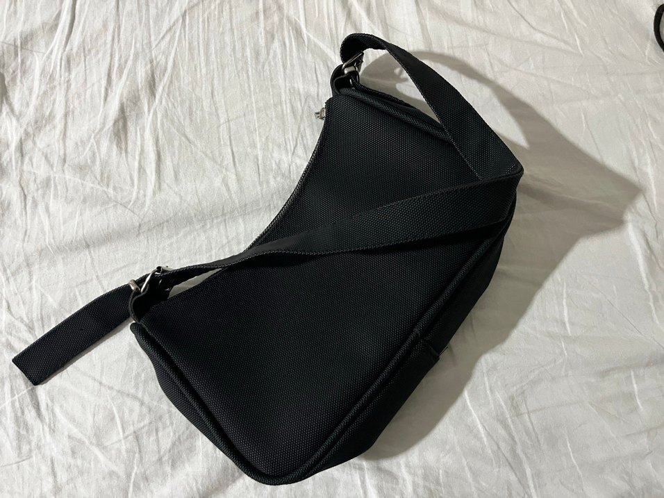 Siyah renkte, tokalı ve sentetik kumaştan yapılmış kadın omuz çantası. Minimalist, desensiz tasarımıyla günlük kullanım için uygundur.
