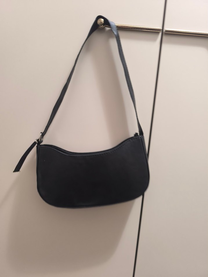 Siyah omuz çantası, minimal tasarıma sahip, düz ve desensiz, günlük kullanım için uygun. Sokak modasına uyumlu, zahmetsiz şıklık sunar.