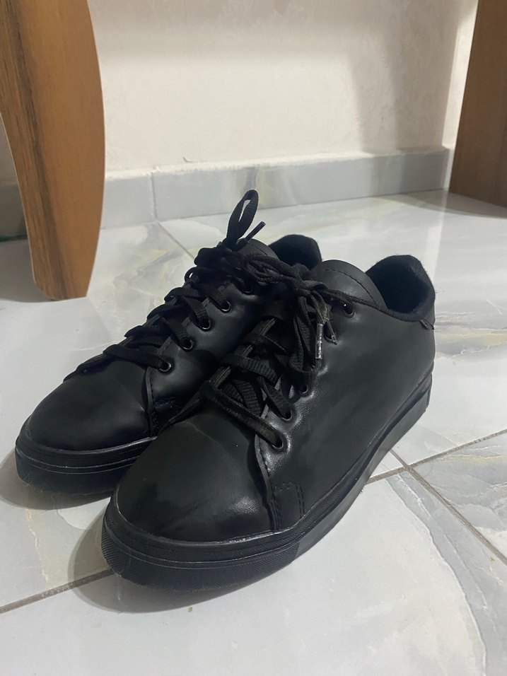 Siyah, minimal tasarımlı kadın sneakers. Kauçuk tabanlı, stiletto topuklu, rahat ve şık günlük kullanım için uygun.