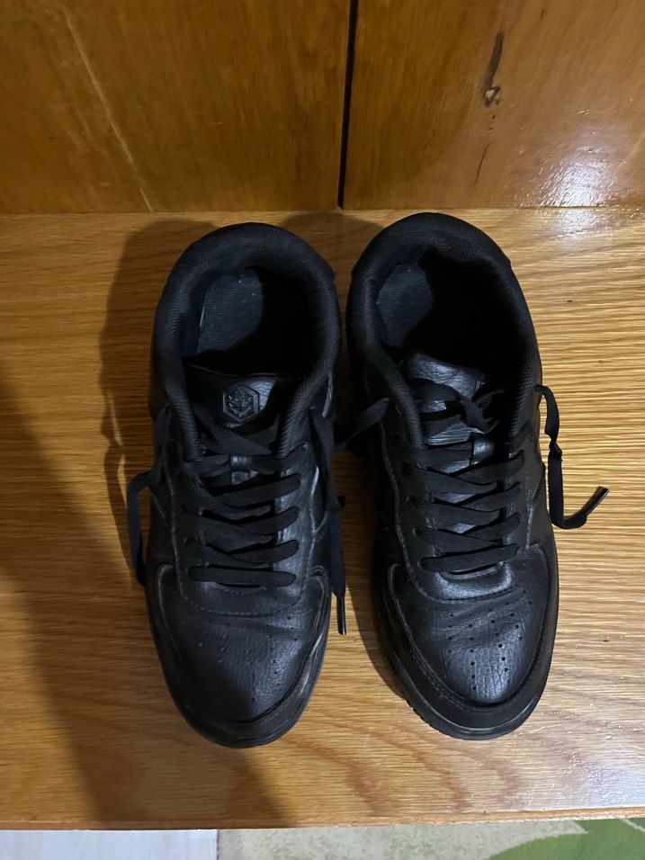Siyah minimalist kadın spor ayakkabısı, stiletto topuklu ve kauçuk tabanlı, zahmetsiz şıklık için tasarlandı.
